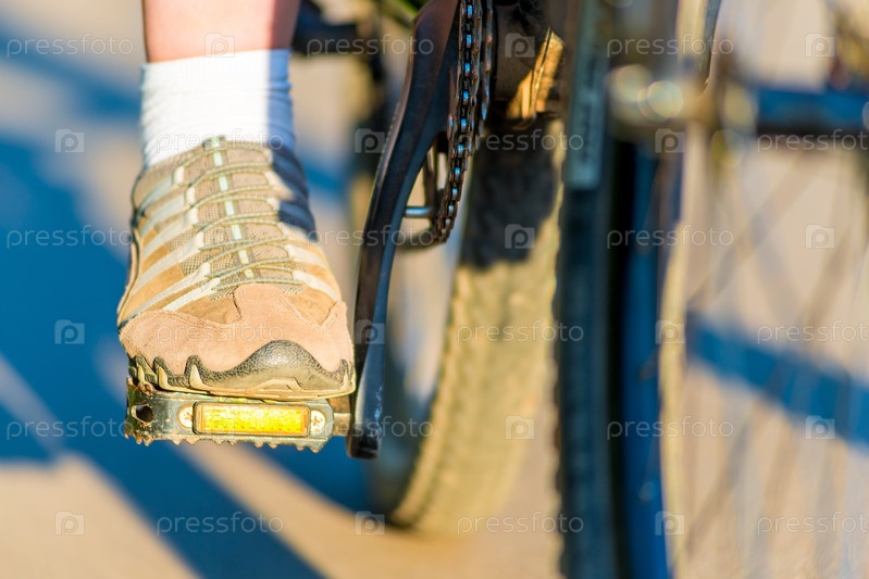 Ноги в кроссовках на педалях велосипеда