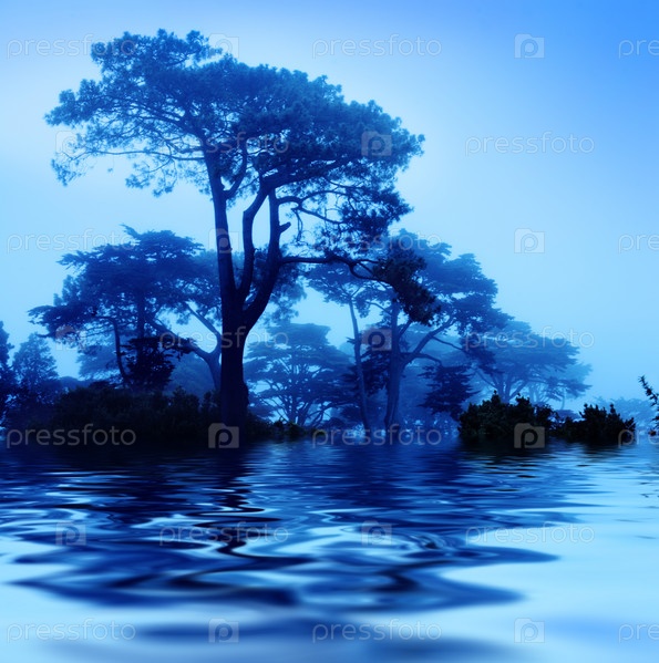 Туманное утро, синий цвет