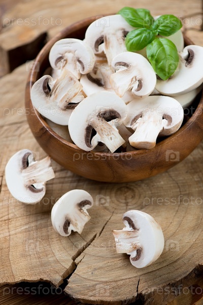 Нарезанные шампиньоны и базилик