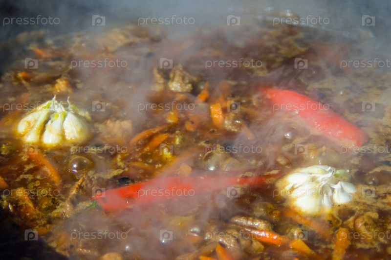 Суп с чесноком и перцем в казане
