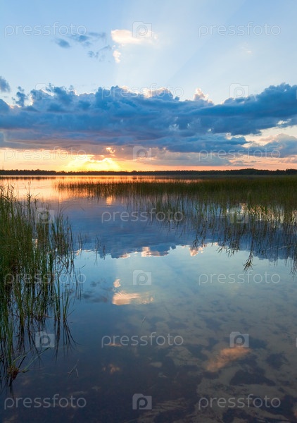 Летний закат на берегу озера