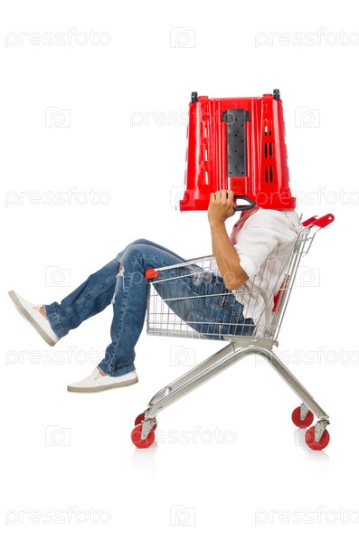 мужчина с тележкой для покупок