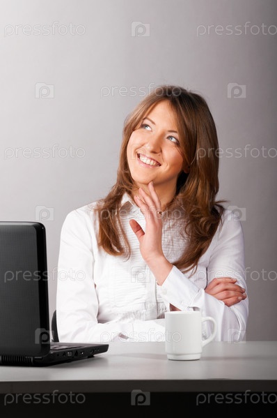 Бизнес-леди за ноутбуком мило улыбается