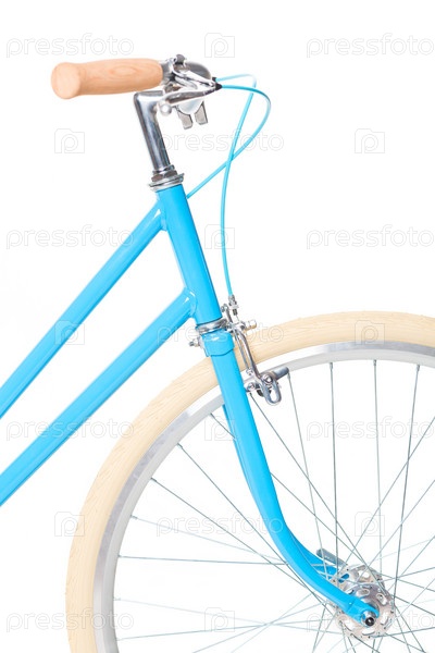Стильный женский синий велосипед на белом фоне