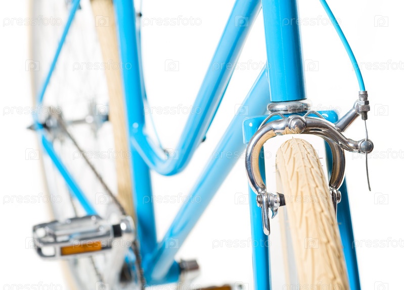 Стильный женский синий велосипед на белом фоне