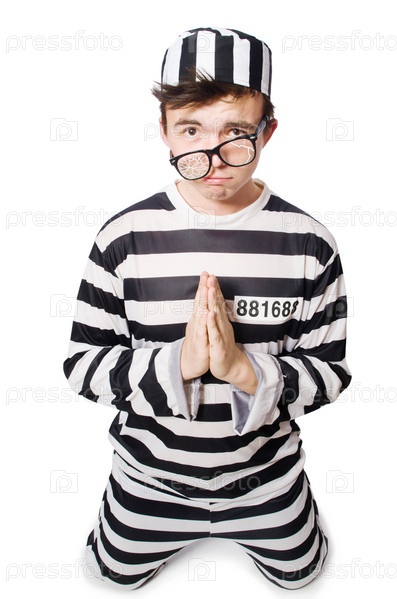 Смешной заключенный на белом фоне