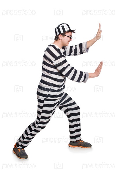 Смешной заключенный на белом фоне