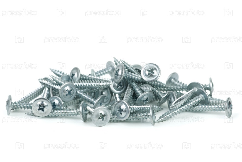 Оцинкованные шурупы с пресс-шайбой на белом фоне
