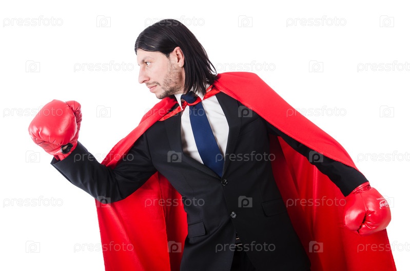 Молодой бизнесмен в костюме супергероя