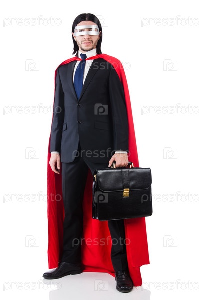 Молодой бизнесмен в костюме супергероя