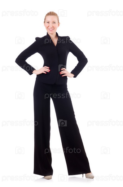 Женщина в костюме на белом фоне