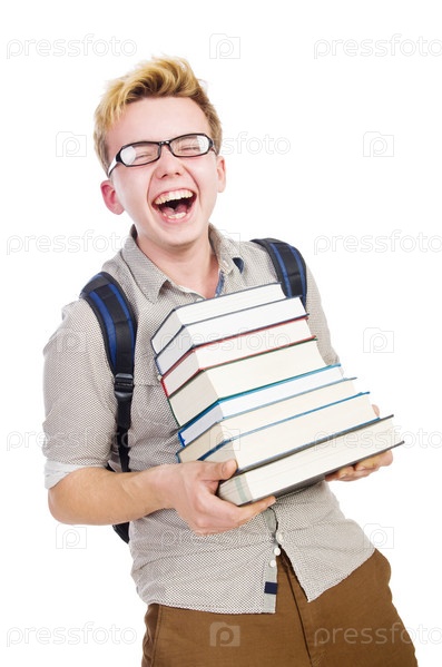 Смешной студент с книгами