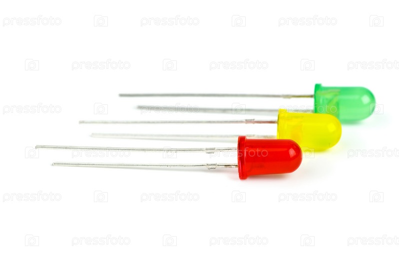 Красный, желтый и зеленый светодиоды на белом фоне