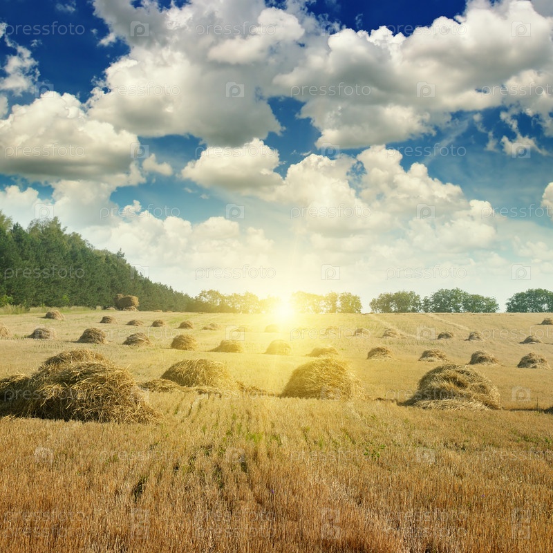 Поле со стогами соломы