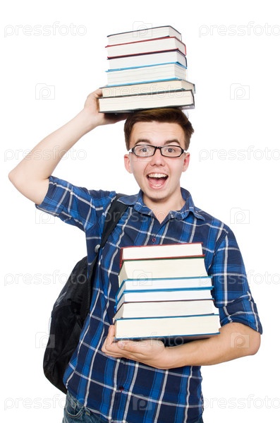 Смешной студент с книгами