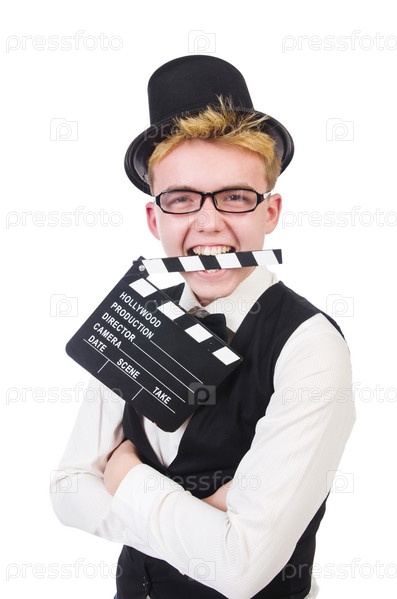 Забавный человек с хлопушкой