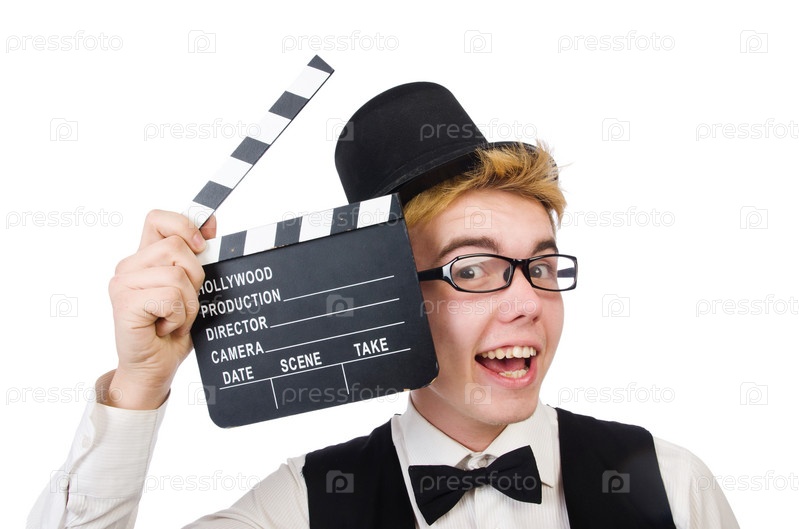 Забавный человек с хлопушкой