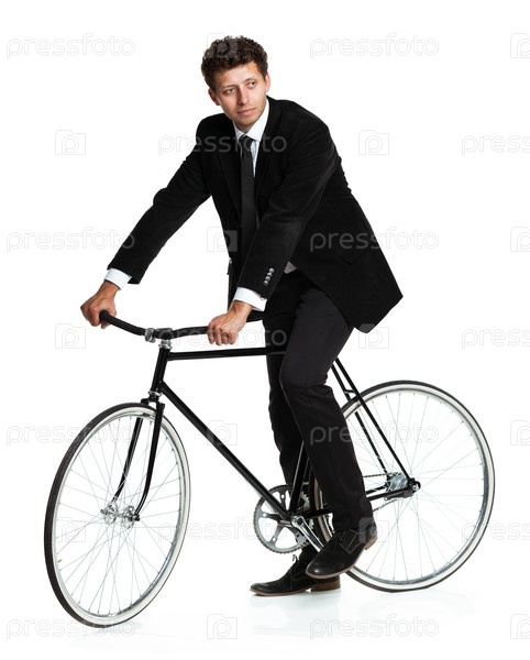 Мужчина в костюме с велосипедом