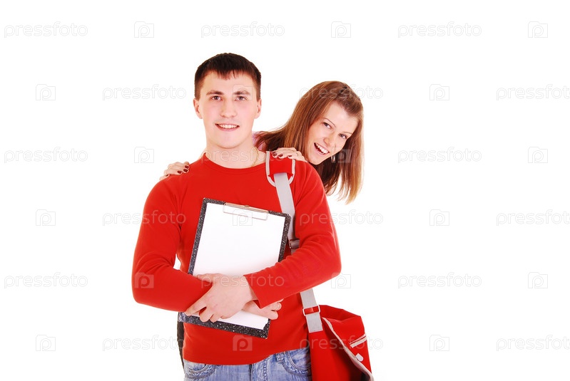 Пара старшеклассников на белом фоне