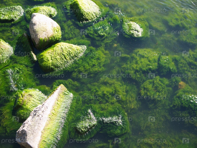 Водоросли на камнях на пляже