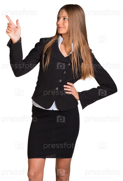 Деловая женщина указывает пальцем вверх