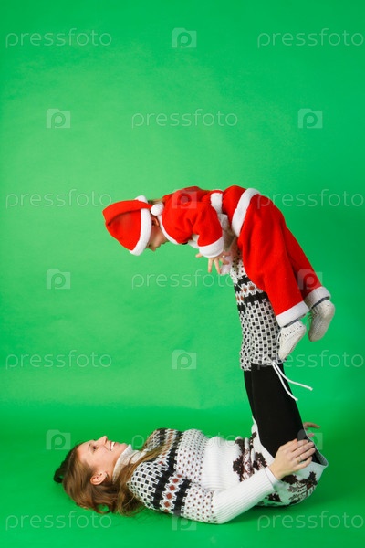 Женщина с сыном в новогоднем костюме