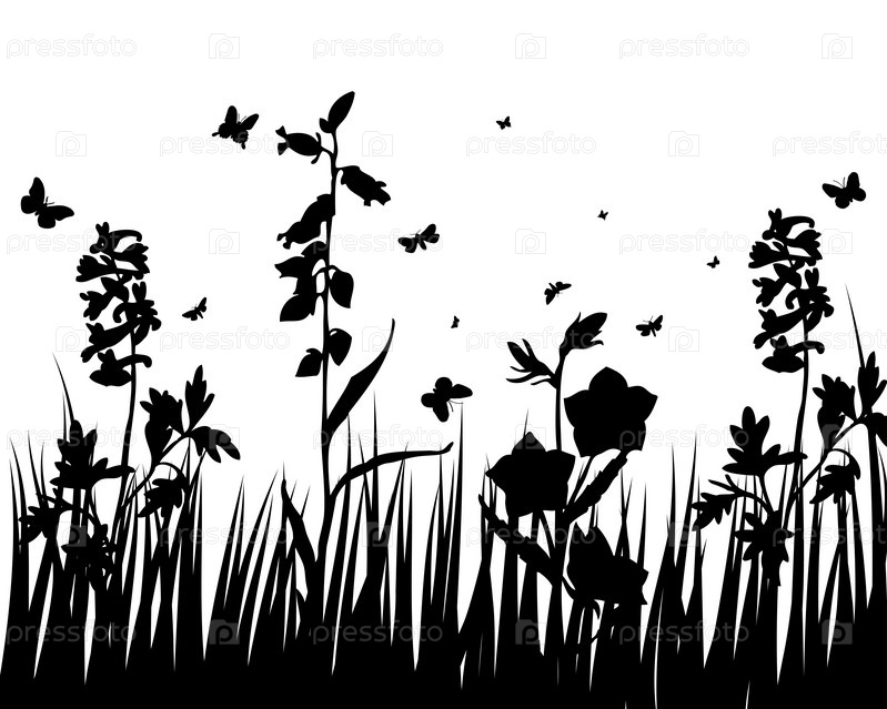 Силуэты травы и бабочек. Все объекты разделены