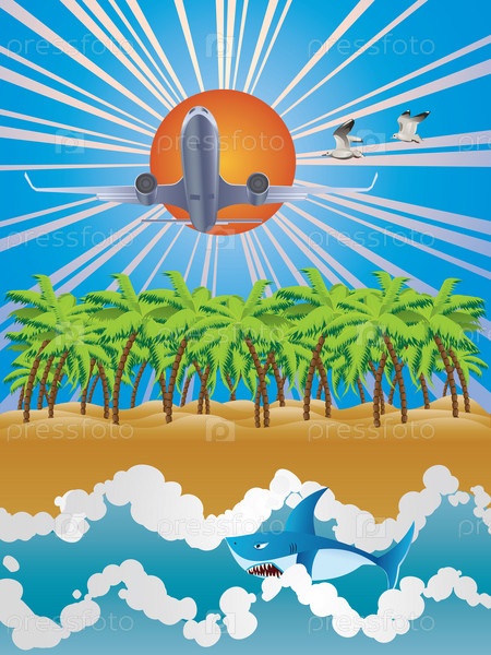 Самолет над тропическим островом