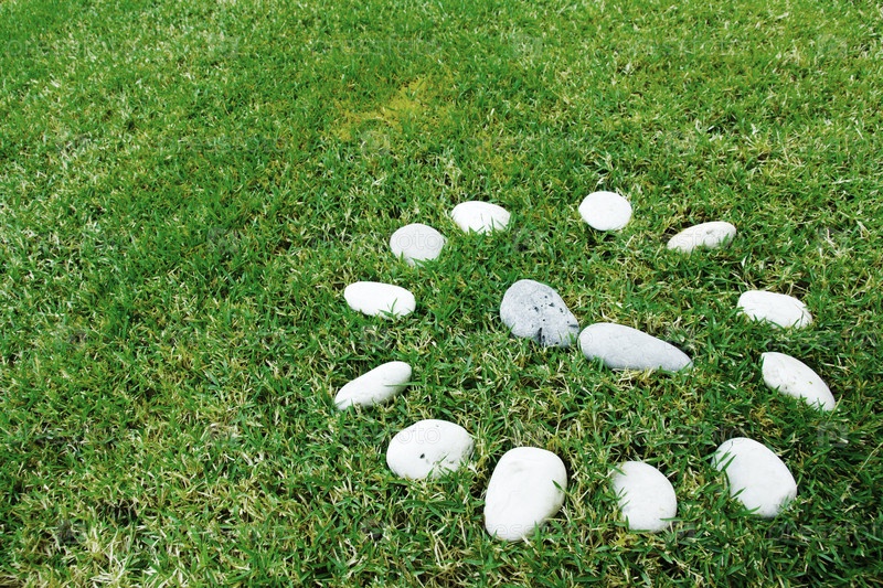Камни в форме круга на траве