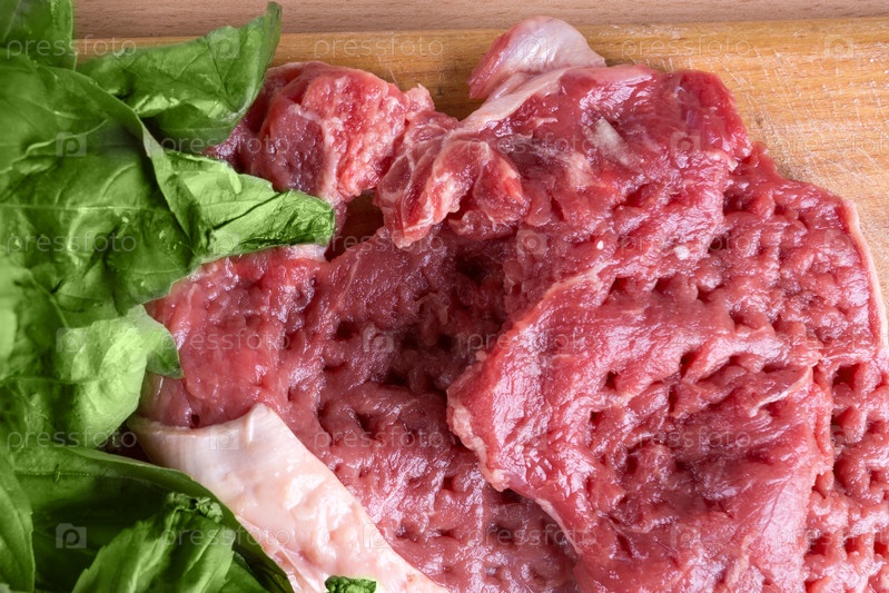 Сырая свинина и базилик