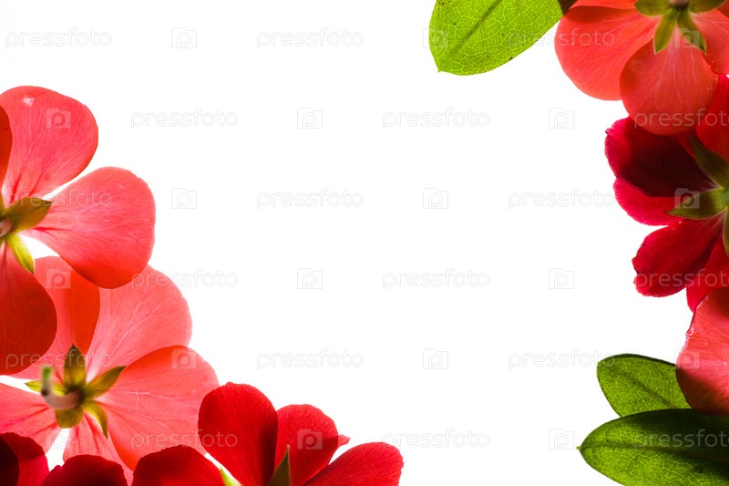 Рамка из красных цветов и зеленых листьев