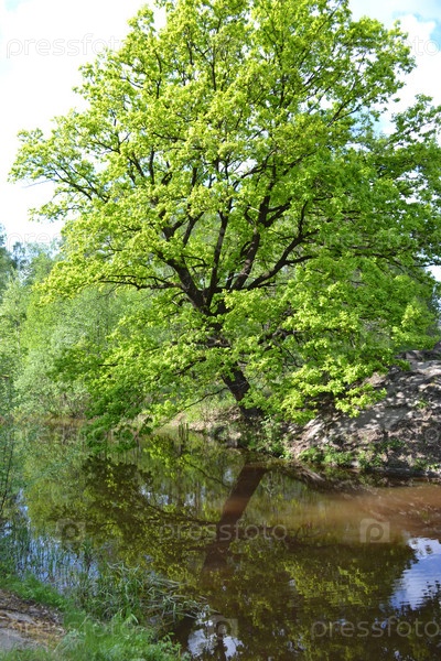Огромный старый дуб у реки