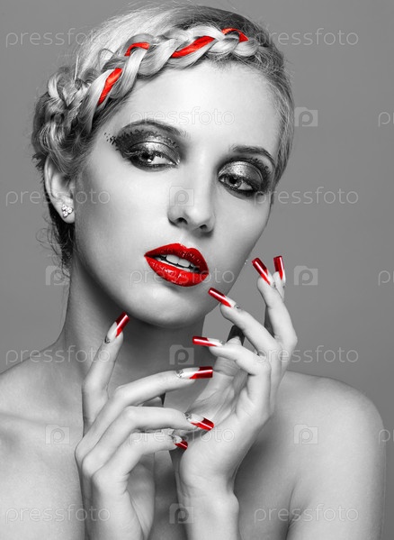 Молодая женщина с красным маникюром