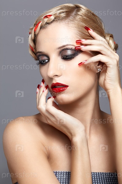 Молодая женщина с красным маникюром