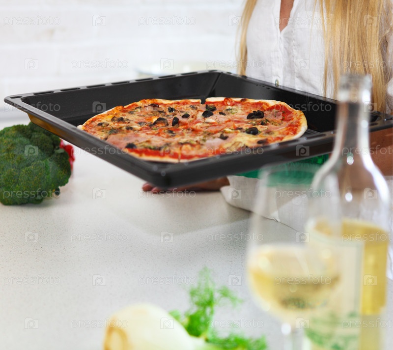 Женщина готовит пиццу