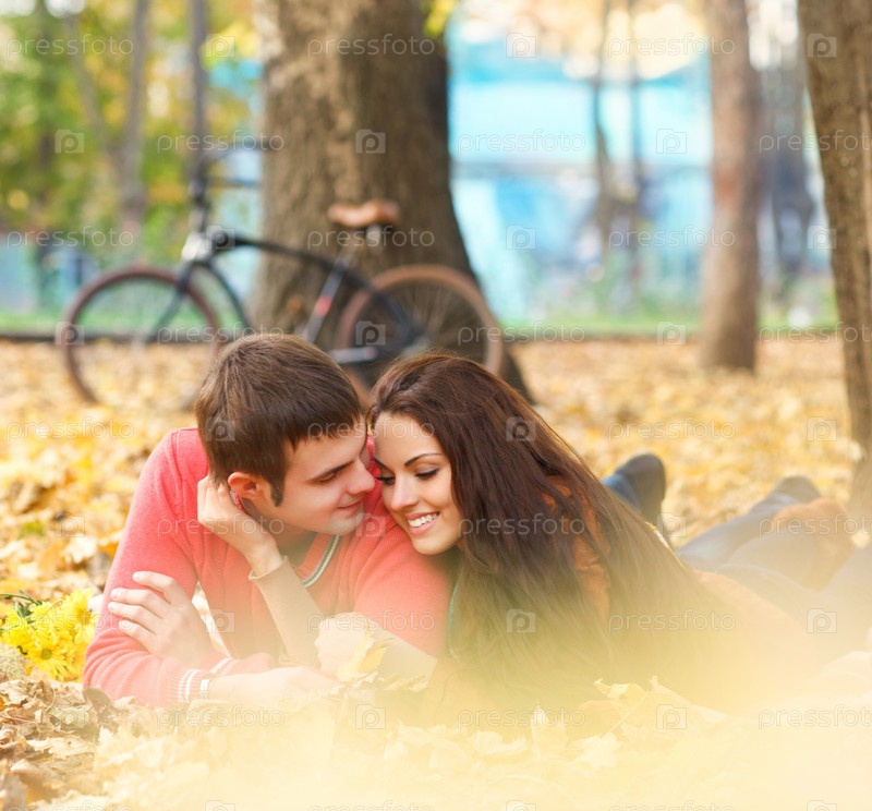 Молодая пара в осеннем парке