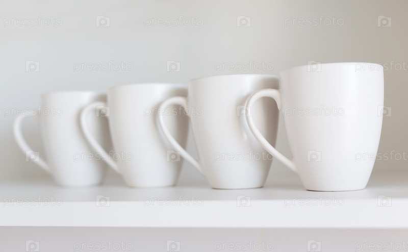 Белые чашки на полке