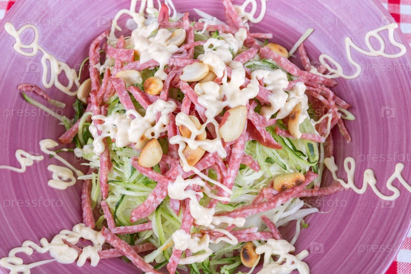 Берлинский салат из огурцов и колбасы