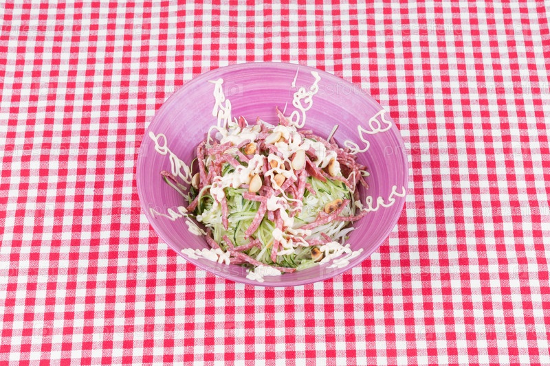 Берлинский салат из огурцов и колбасы