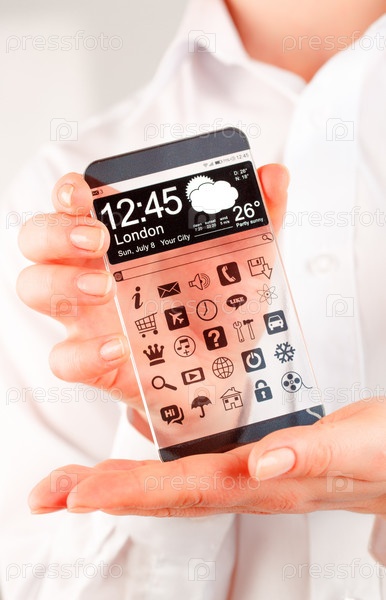 Смартфон с прозрачным экраном в руках