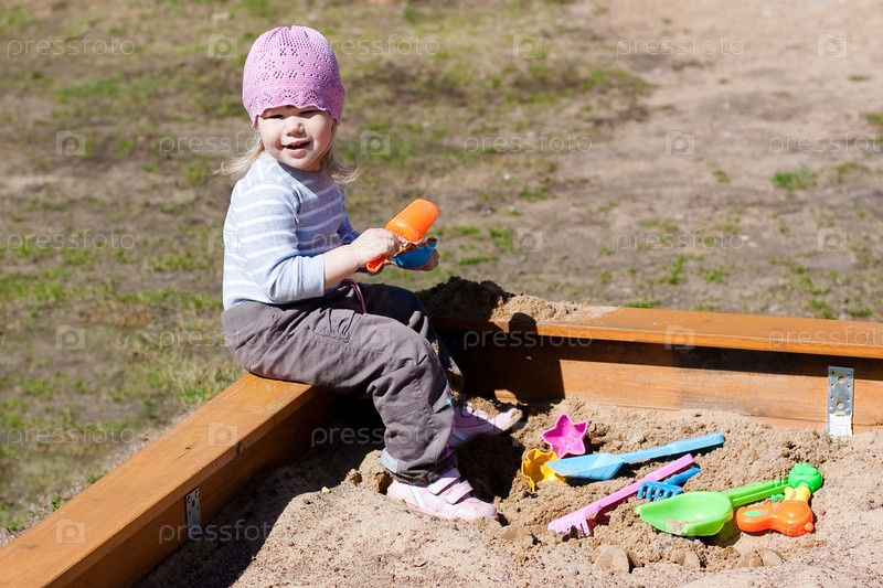 Девочка играет в песочнице