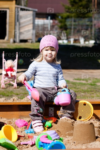 Девочка играет в песочнице