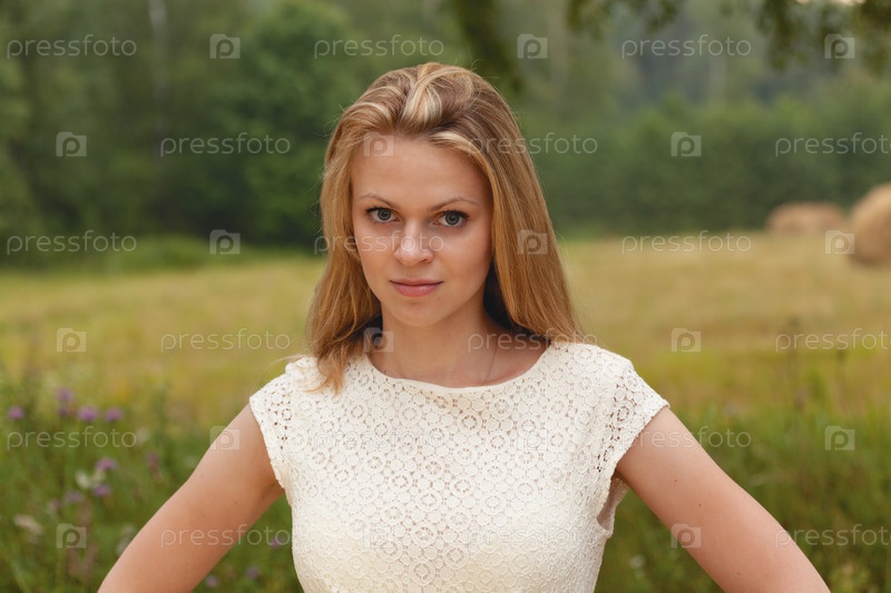 Девушка в белом платье на летнем лугу