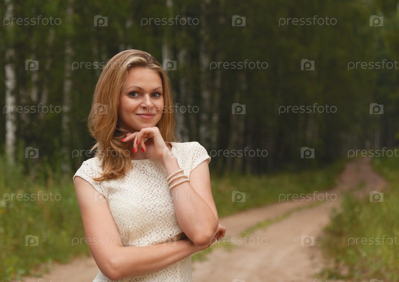 Девушка в белом платье на лесной дороге