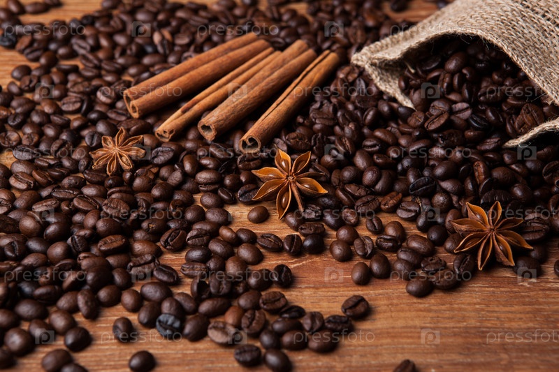 Обжаренный кофе и палочки корицы