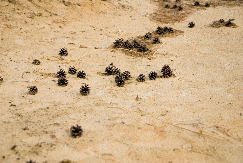 Шишки на желтом песке