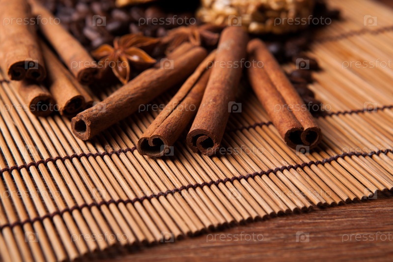Обжаренный кофе и палочки корицы