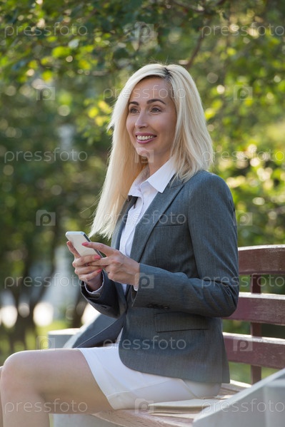 Бизнес-леди со смартфоном в парке