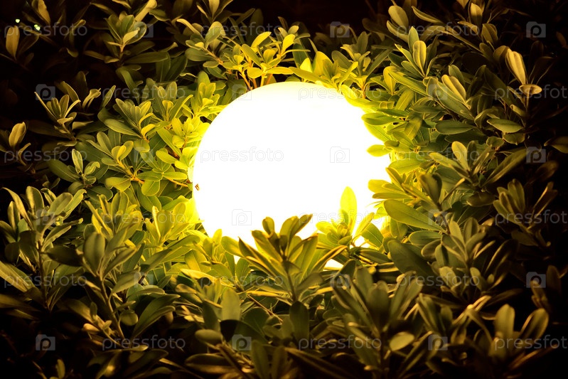 Круглый фонарь в ветвях