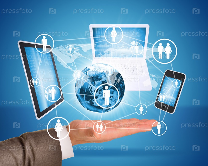 Рука держит Землю и электронику